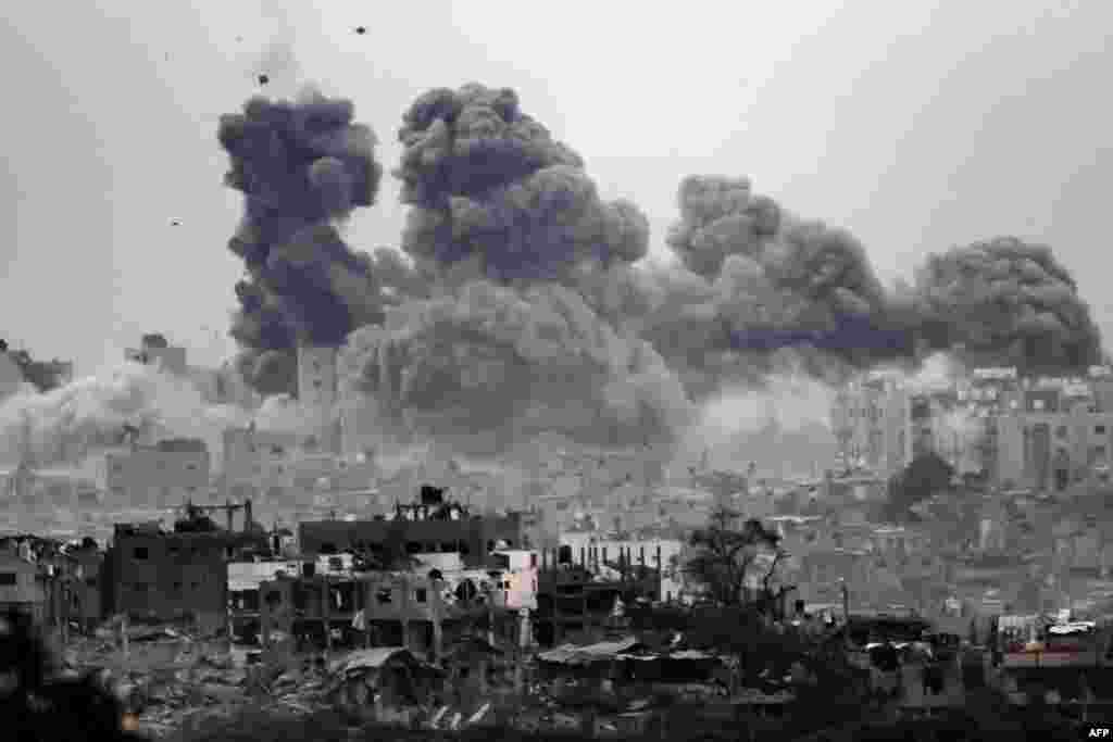 A picture taken from southern Israel along the border with the Gaza Strip shows Israeli army buldozers crossing the border into Gaza, on October 29, 2023 amid ongoing battles between Israel and the Palestinian militant group Hamas. Photo by Menahem KAHAN