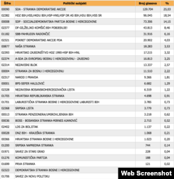 Najviše glasova za Parlament FBiH dobili su SDA, koalicija na čelu sa HDZ-om BiH i SDP. Za Parlament FBiH obrađeno je 57 posto biračkih mjesta.